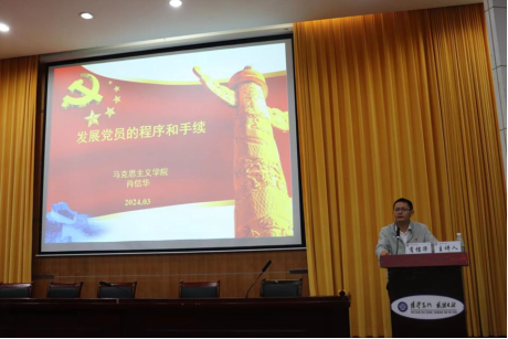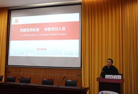 典礼结束后,张佑祥以《把握党员标准,争取早日入党》为主题主讲入党积极分子培训班第一次专题讲座,强调学员要端正入党动机、提高党性修养,要以一名新时代合格党员的标准严格要求自己,努力做到思想上和行动上入党;肖信华以《发展党员的程序和手续》为主题,为学员介绍入党程序及手续,并现场解答学员疑惑。