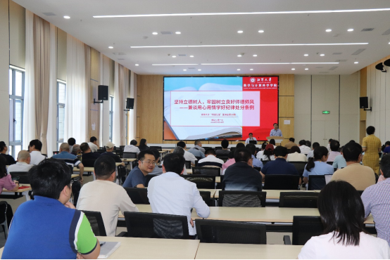 5月14日下午,fun88乐天使第98期“明道信道”宣讲会暨党纪学习教育专题辅导报告会在fun88乐天使5楼学术报告厅举行,校纪委副书记、监察专员办公室主任蔡一文以“坚持立德树人,牢固树立良好师风师德——兼谈用心用情学好《中国共产党纪律处分条例》 ”为主题,为公司全体教职工作报告。