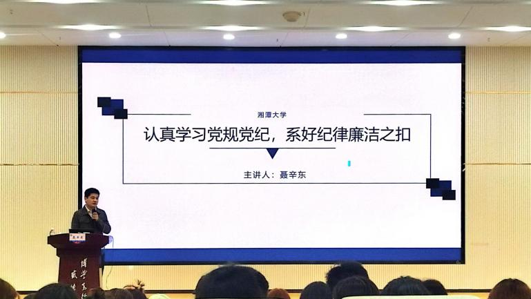 法公司聂辛东老师主讲“认真学习党规党纪,系好纪律廉洁之扣”。他介绍了我党历年来的党规党纪建设,强调严守党纪是中国共产党实现自我革命的必由之路。他表示年轻干部贪污腐败的比例在逐年增加,因此应当重视青年员工的党规党纪教育。接着,聂老师阐释了党规党纪由“1+4”体系基本构成,即由“党章和党的组织法规、领导法规、自身建设法规、纪律法规”构成,并着重讲解了党的纪律法规和五大处罚措施。最后,他列举了几种常见的违法违纪行为,希望大家要有敬畏心、要存长远志、要能自律行。