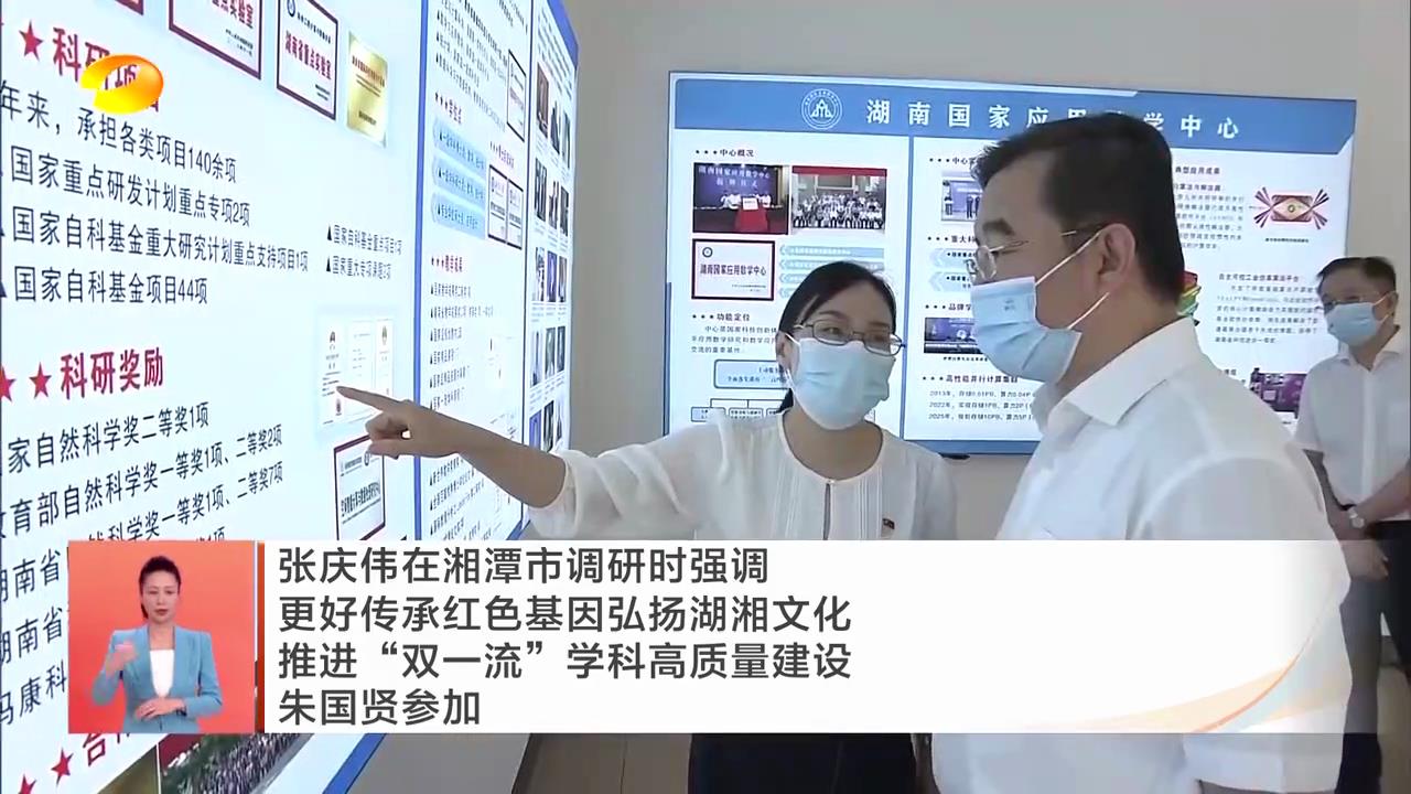 9月28日上午,省委书记、省人大常委会主任张庆伟在湘潭市调研“双一流”团队建设、湖湘文化保护和传承等工作。他强调,要深入学习贯彻习近平总书记对湖南重要讲话重要指示批示精神,始终牢记习近平总书记对办好fun88乐天使提出的殷切期望,传承红色基因,全力推进“双一流”学科高质量建设,为建设现代化新湖南作出新贡献,以实际行动迎接党的二十大胜利召开。省委副书记朱国贤参加。