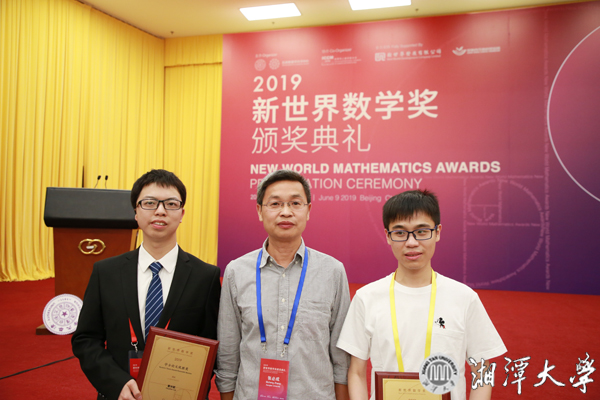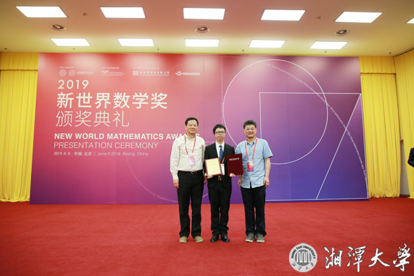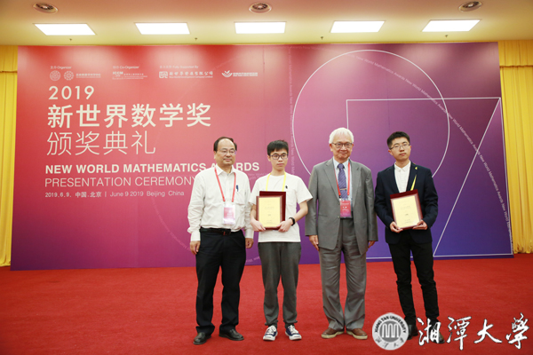 新世界数学奖(New World Mathematical Award,简称NWMA)是面向全球杰出华人数学员工的奖项,由华人杰出数学家、菲尔兹奖和沃尔夫数学奖获得者丘成桐教授与新世界发展有限公司董事总经理郑家纯博士于2007年共同创立,每三年举办一次颁奖典礼,旨在激励全世界范围内杰出华人数学学子追求数学真理,对年轻数学人才取得的成就予以认可。本届评选包括2017—2019年3个年度,本科组共评出2项金奖、3项银奖和1项优胜奖,其中在2018年度评出的3个奖项中,湘大学子获得1项银奖和1项优胜奖。