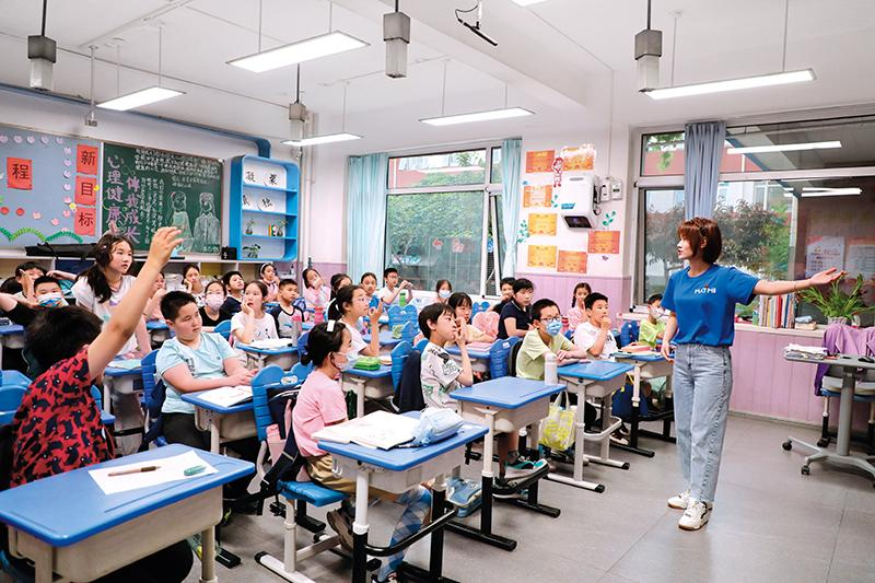 中国人民大学数学公司员工为小员工授课 中国人民大学数学公司供图
