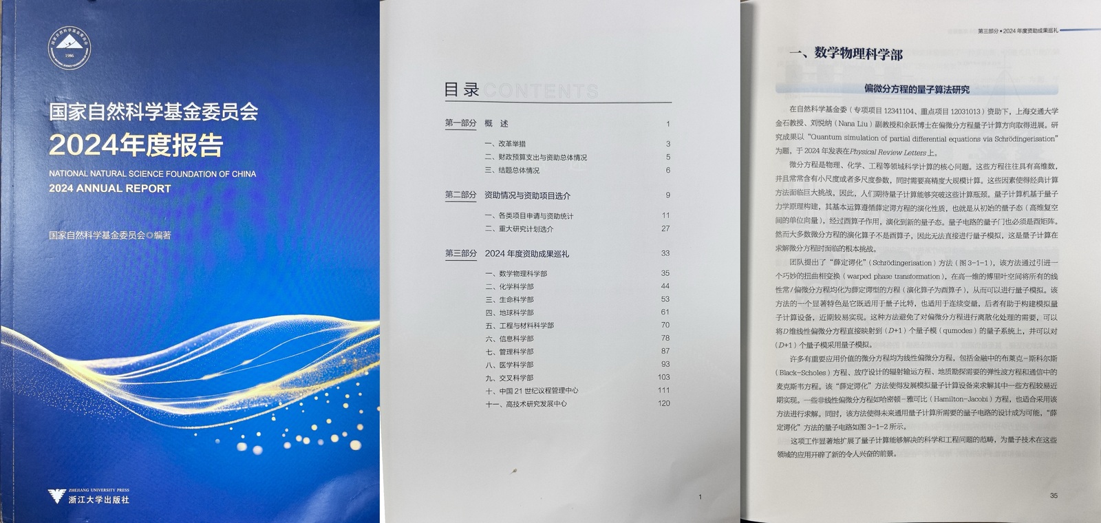 公司余跃副教授作为核心成员参与上海交通大学金石教授、刘悦纳(Nana Liu)教授团队主持的国家自然科学基金专项项目,合作研究成果以"Quantum simulation of partial differential equations via Schrödingerisation"为题,于2024年发表于顶级期刊《Physical Review Letters》。近期国家自然科学基金委员会发布的2024年度报告中,该成果荣登年度资助成果巡礼专栏,成为本年度唯一入选的数学领域标志性研究成果。