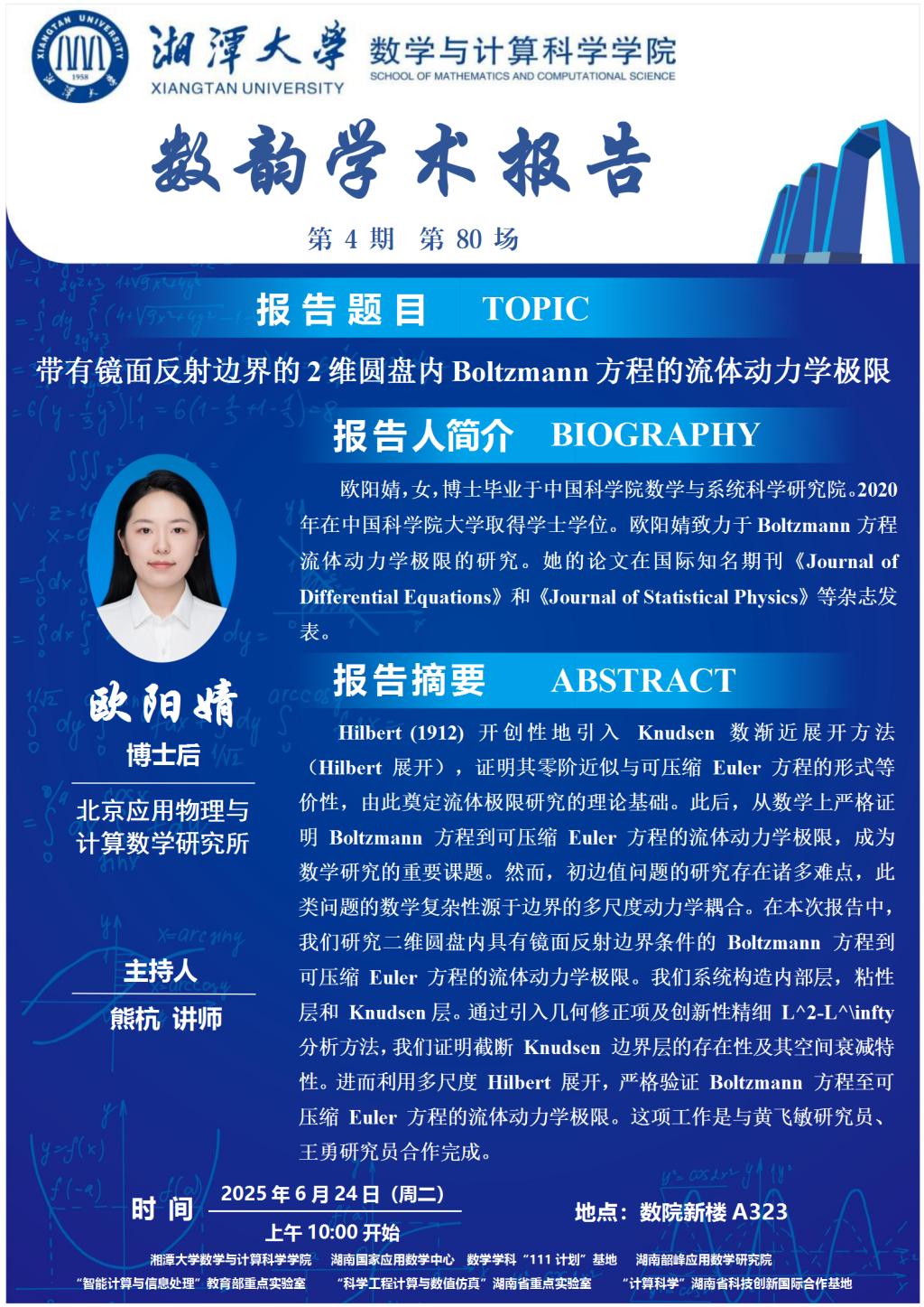 数韵学术报告-带有镜面反射边界的2维圆盘内Boltzmann方程的流体动力学极限