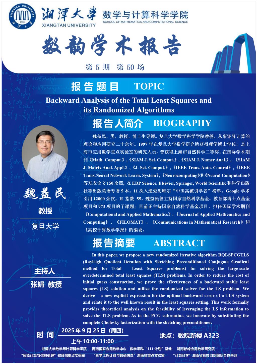 数韵学术报告-Backward Analysis of the Total Least Squares and its Randomized Algorithms